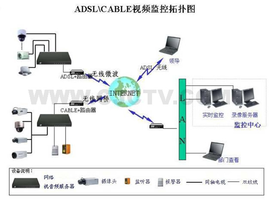 无线网络视频监控解决方案具有传输距离远、低时延(对视频应用非常关键)和设备成本低的特点,可以提供高效和经济的视频传输解决方案。宽带无线接入设备提供11Mbps/54Mbps的高网络带宽,可以将不同地点的现场视频信息通过无线通讯手段实时传送到监控中心,支持采用H.264/ MPEG-1/2/4等格式的数字视频流稳定可靠地进行传输,能够保证视频流的稳定持续传输,最远传输距离可以达到50公里以上,并且不受山川、河流、桥梁道路等复杂地形限制。